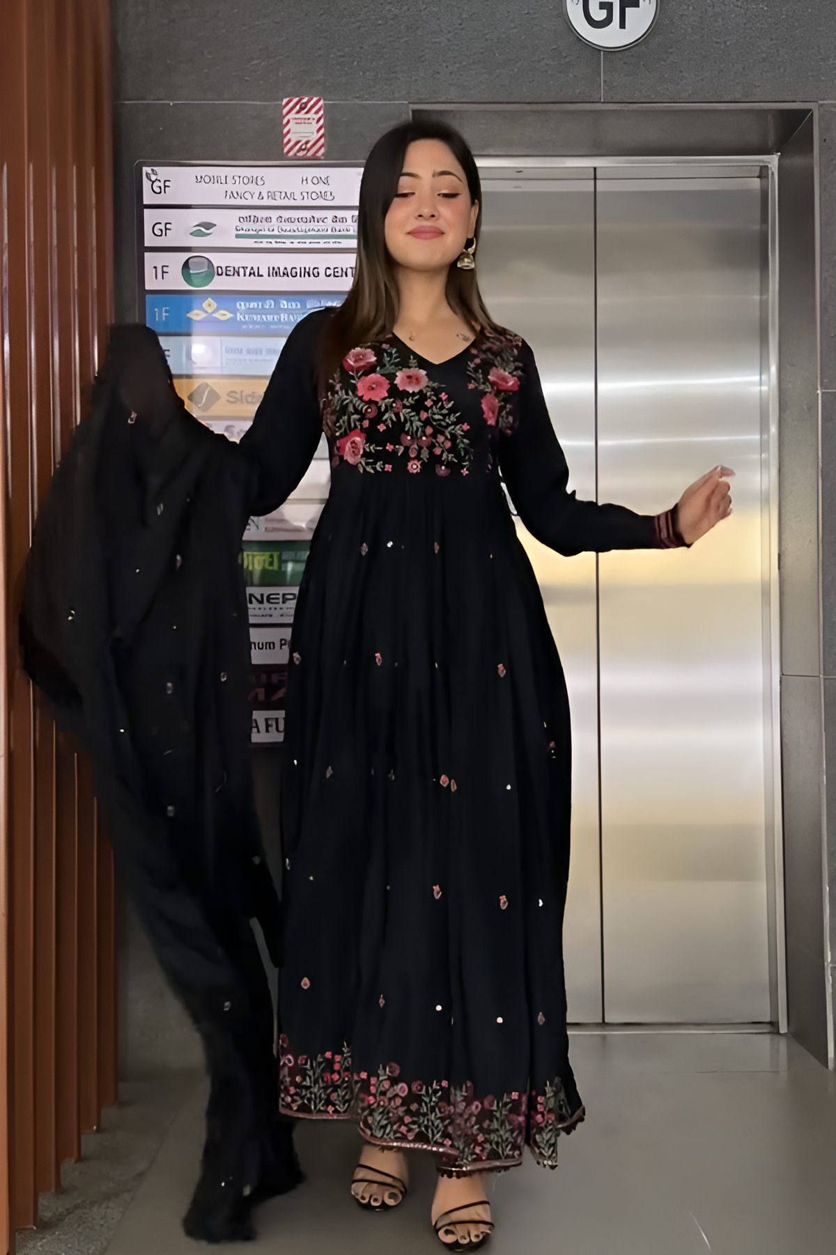 নাম : Black Floral Anarkali Set